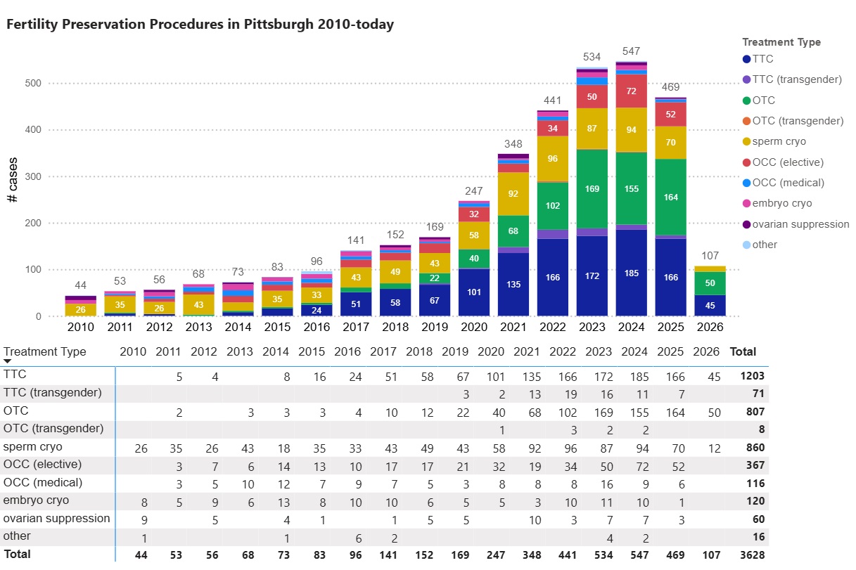 Our education and outreach efforts have improved awareness in Pittsburgh and the Western Pennsylvania region about standard-of-care and experimental fertility preservation options available at the Fertility Preservation Program in Pittsburgh. The number of fertility care options available and the number of patients treated have increased significantly since 2010.