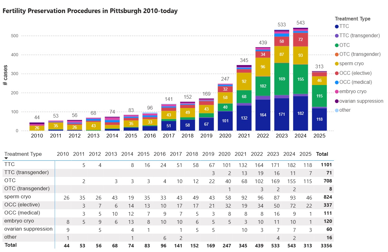 Our education and outreach efforts have improved awareness in Pittsburgh and the Western Pennsylvania region about standard-of-care and experimental fertility preservation options available at the Fertility Preservation Program in Pittsburgh.  The number of fertility care options available and the number of patients treated have increased significantly since 2010.