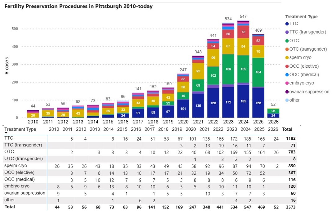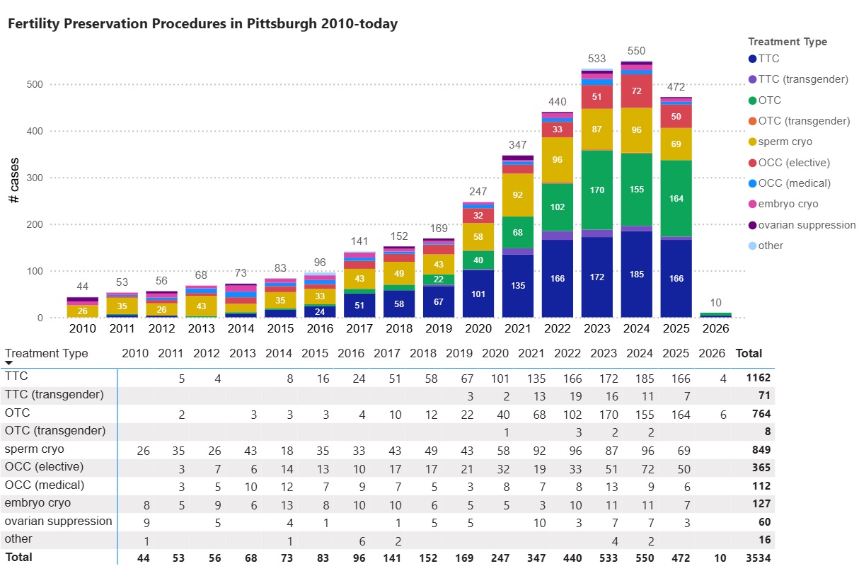 Our education and outreach efforts have improved awareness in Pittsburgh and the Western Pennsylvania region about standard-of-care and experimental fertility preservation options available at the Fertility Preservation Program in Pittsburgh. The number of fertility care options available and the number of patients treated have increased significantly since 2010.